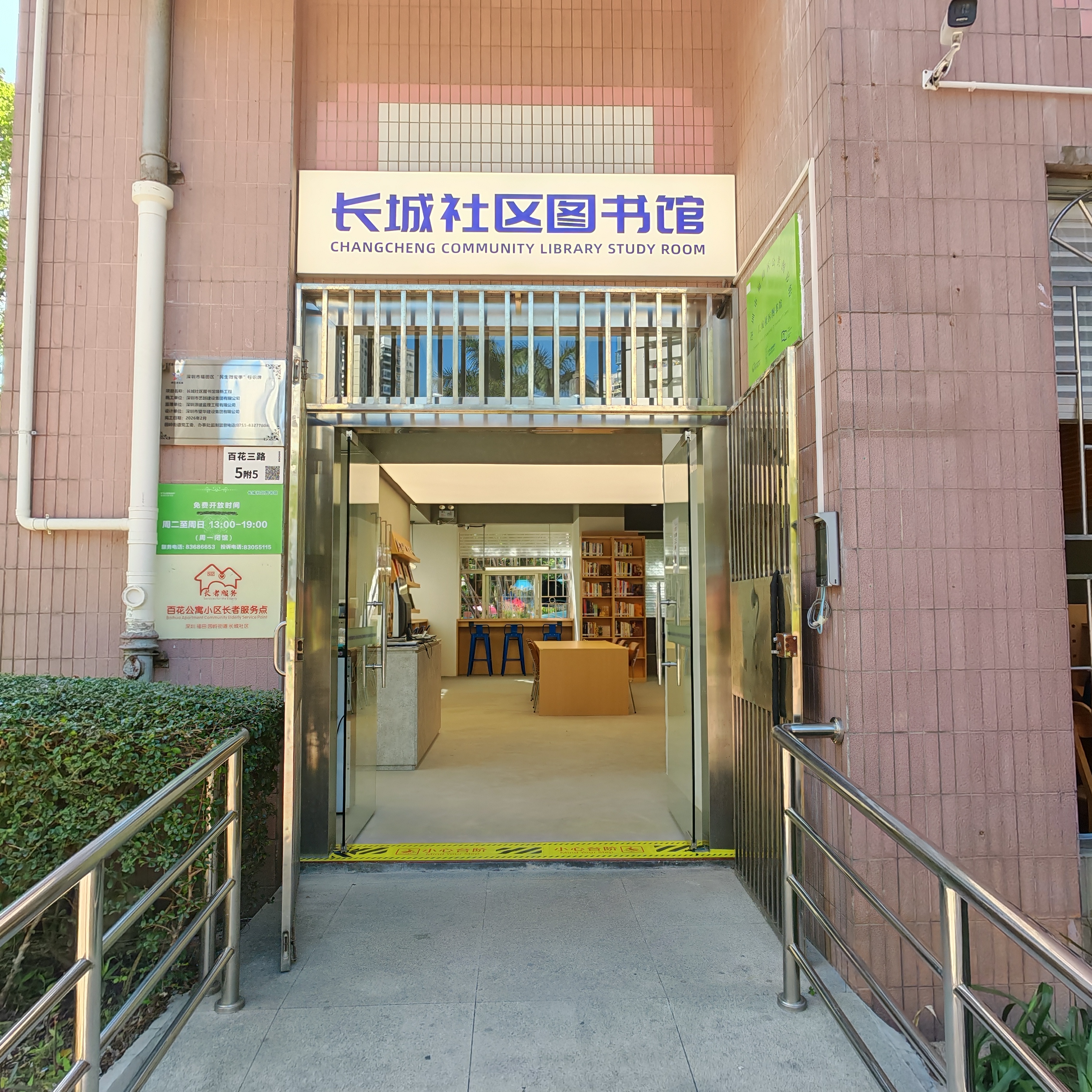 长城社区图书馆位于百花公寓5栋1楼,馆舍面积135平方米,2026年完成全面改造提升后,精选馆藏书2000余册,报刊55种,馆内设有服务台及自助借阅区、图书阅览区、自习区、少儿阶梯阅览区,提供阅览座位60个。 读者可乘坐公交:323、M203、M207、M213、M401、11、111、216、222、E11,地铁:黄木岗(14号线)a、b出口可到达。